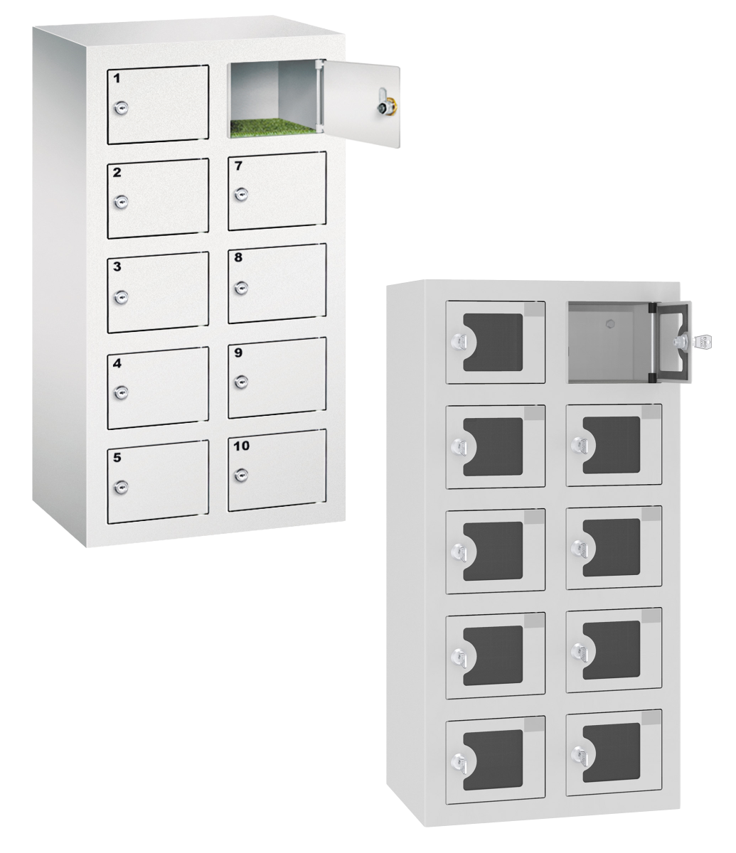 - Zylinderschlössern mit zwei Schlüsseln für sichere Verwahrung