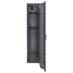 Der Waffentresor ist in mehreren Versionen erhältlich, wobei die größte Version nicht weniger als 14 Waffenhalter besitzt. Sie können wählen, ob Sie den Tresor mit einem Schlüsselschloss oder Elektronikschloss ausstatten wollen. Der Tresor hat auch ein separates abschließbares Innenfach, in dem Sie Ihre Munition getrennt von Ihren Waffen aufbewahren können.