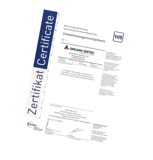 Die internationale Norm DIN EN ISO 14001 regelt die Implementierung eines allgemeinen Umweltmanagementsystems. Diese Norm hat die kontinuierliche Verbesserung des Umweltschutzes zum Ziel. Durch verschiedene Maßnahmen, wie die Vermeidung von Müll, sorgsame Mülltrennung und den Einsatz von stromsparender Technik, erfüllt ORGAMI SISTEC diese Norm.