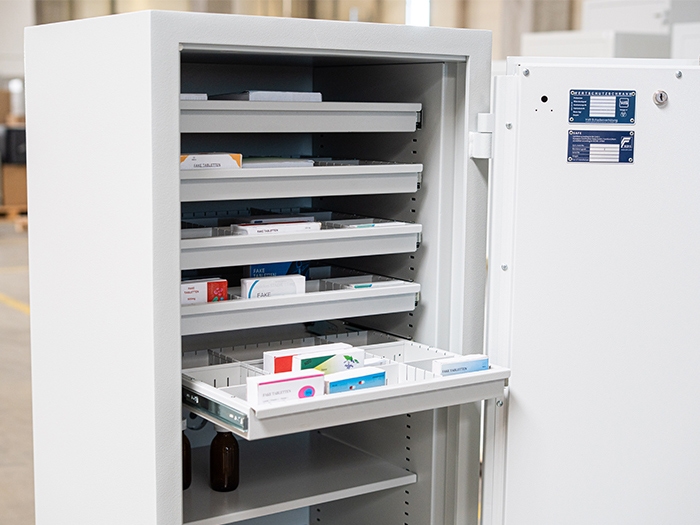 Für den grundlegenden Schutz sensibler Bereiche im Gesundheitswesen – wie Krankenhaus-Teileinheiten (Stationen o.ä.), Arztpraxen sowie Alten- und Pflegeheime – genügt ein Tresor mit dem Widerstandsgrad 0 gemäß EN 1143-1.